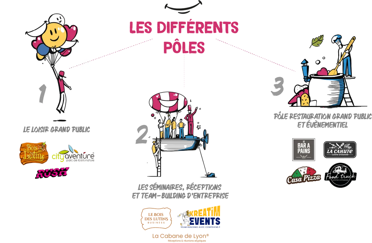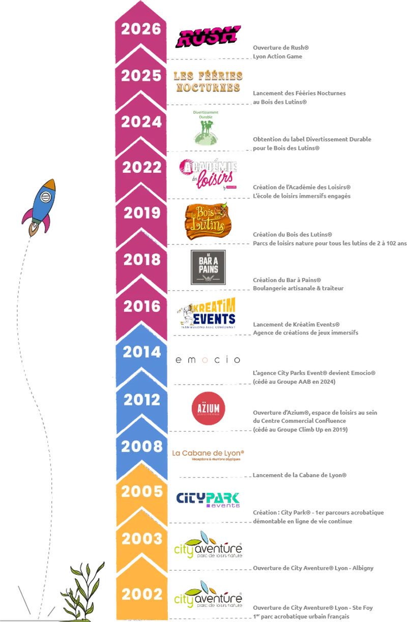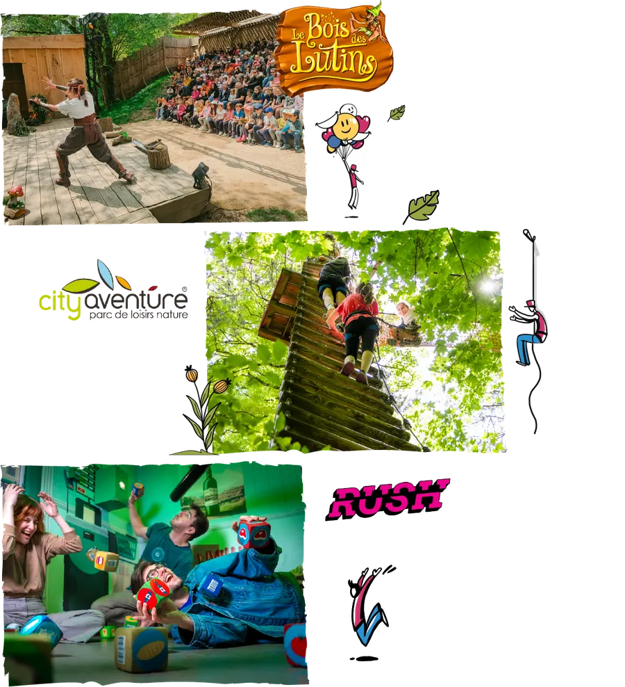 Chaque année, plus de 200 000 personnes visitent nos parcs de Loisirs Nature City Aventure® et le Bois des lutins Lyon-est Diémoz®. Leurs points communs ? Des lieux naturels magnifiques et des jeux et attractions conçus pour être partagés en famille ou entre amis !